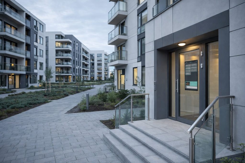 Når potensielle kjøpere eller nye beboere entrer oppgangen, er lobbyen eller fellesarealet det første de ser. En tradisjonell papirtavle med falmede ark kan gi et utdatert inntrykk, mens en digital infoskjerm signaliserer innovasjon og omsorg for beboerne. Ifølge bransjerapporter forbedrer digital signage umiddelbart visuell appell og viser en «beboer-først»-tilnærming.
